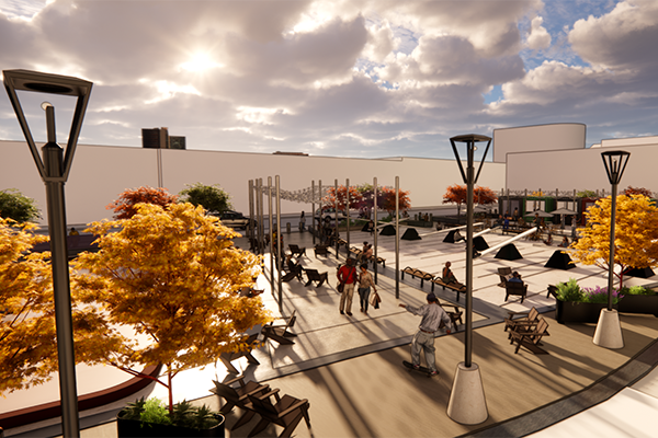 The enhanced space is expected to reopen in summer 2026 and will feature outdoor seating, expanded gathering areas and improved pedestrian connections between Main Street and Garden Square. The temporary public space will activate the area while long-term plans for Heritage Theatre Block and Southern Blocks continue to advance. The ultimate design for Garden Square is underway following the selection of a design concept led by Canadian architecture firm gh3* in partnership with the international landscape architecture company Mandaworks.