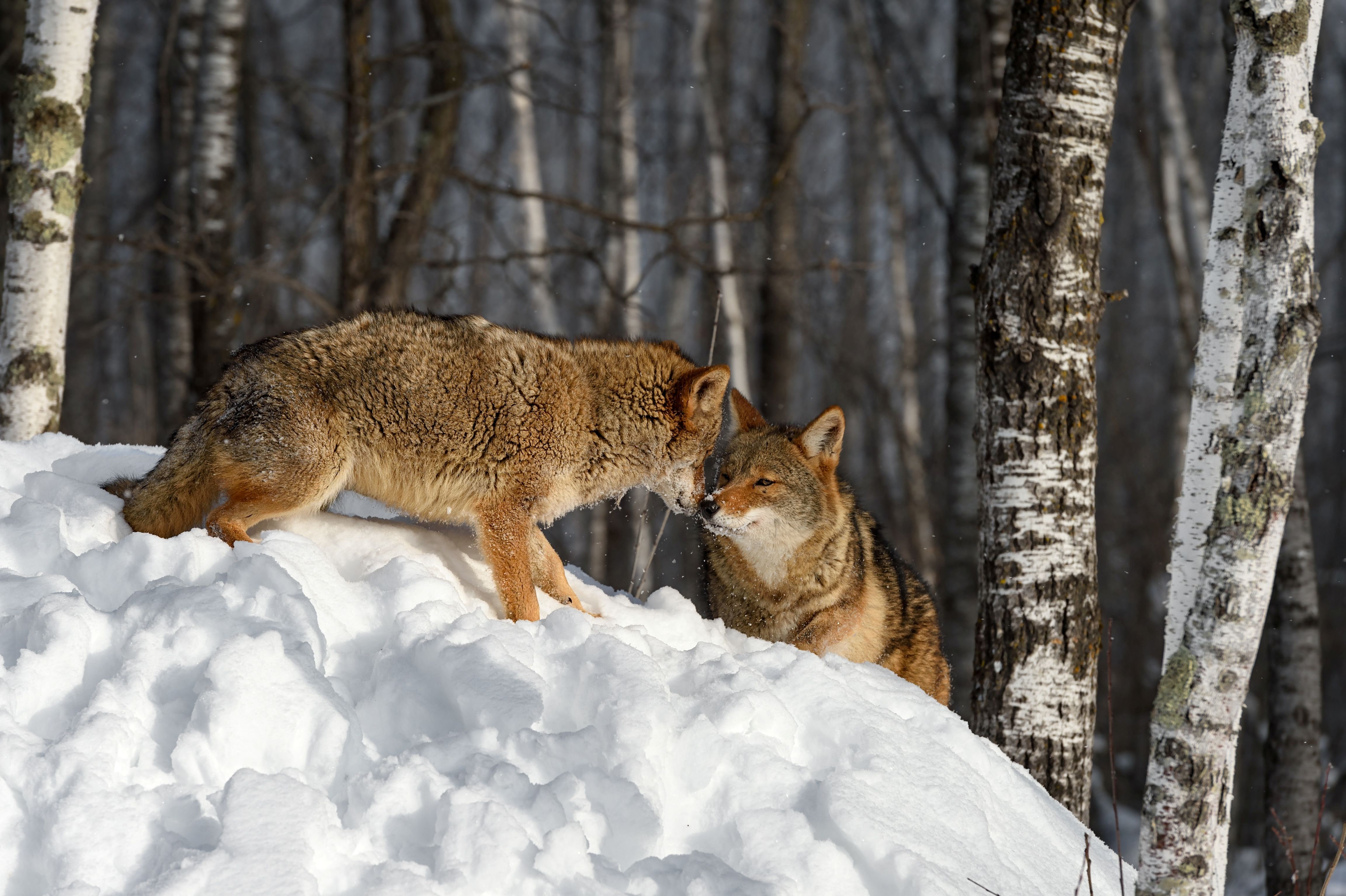 Coyotes are naturally timid animals and typically avoid people. Most sightings involve coyotes searching for food, a mate or protecting their family groups. They are primarily focused on keeping other coyotes away from their territory.