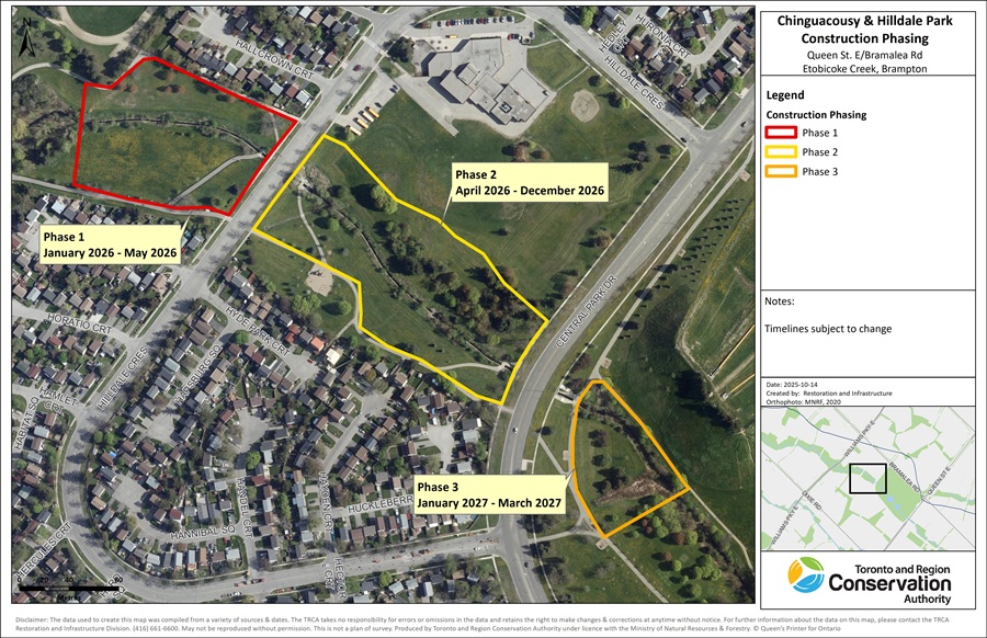 Toronto and Region Conservation Authority (TRCA) and the City of Brampton are partnering to restore approximately 500 metres of degraded, channelized Spring Creek located within Donald M. Gordon Chinguacousy Park, Hilldale Park North, and Hilldale Park South.