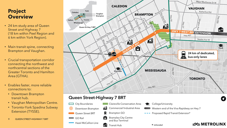 The Queen Street Highway 7 BRT study is currently at the Preliminary Design stage.