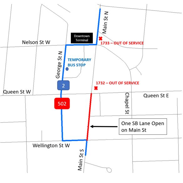 Service Alerts Bus Stop Impacts & Detours Service AlertsSection Menu In this section Brampton TransitPlan your Trip Schedules and MapsTrip PlannerSchedules TooliRide School RoutesService ChangesBT On DemandHeart Lake Business Park Employment ShuttleArgo Service Alerts Transit UpdatesBus Stop Impacts & DetoursCurrently selectedService ChangesSpecial Events Services Fares Bus FaresPRESTOSenior Fare for Brampton ResidentsTransfers and Connecting TransitAffordable Transit ProgramVeteran Pass Program Projects and Initiatives Chinguacousy Road Züm ProjectHazel McCallion LineLRT Extension StudyCadetta Johnston Transit FacilityDowntown Brampton Transit HubQueen Street Bus Rapid Transit Riding with Us How to RideRider GuidelinesPassenger SafetyBT Safe AppStudentsBike and RideTravelling at NightSee Something, Hear Something, Say SomethingTransit No Smoking By-LawWi-Fi at TerminalsRide Safely with your Stroller Accessible Service Accessible ServicePriority and Courtesy SeatingSafety and the LawMagnusCards Züm About ZümVehiclesZüm StopsZüm FAQs About Us Fast FactsOur TechnologyRidershipSocial Mediae-Newsletter Contact Us Transit Customer ServiceTerminals and FacilitiesLost and FoundHow to Advertise Page Content Dixie Road at Williams Parkway ClosuresAffected Routes18 Dixie29/29A WilliamsDetailsEffective: Wednesday, January 08, 2025 until December 31, 2025There will be construction work at Dixie Road and Williams Parkway for approximately one (1) year. As a result, the westbound and eastbound lanes on Williams Parkway will be reduced to a single lane. The northbound and southbound lanes on Dixie Road will be reduced to a single lane. Routes 18 Dixie and 29/29A Williams will expect some delays.Bus Stop Changes:Williams Parkway East west of Dixie Road will be temporarily relocated to Route 29/29A Williams – stop #3143Passengers to board Route 29/29A Williams buses at the temporary bus stop on Williams Parkway East of Dixie Road (Near-side of the intersection).Dixie Road south of Williams Parkway East will be temporarily closed to Route 18 Dixie – stop #2649Passengers to board Route 18 Dixie buses at the next existing bus stop on Dixie Road at Lascelles Boulevard – stop #2650Compliance Detailsjavascript:if (typeof CalloutManager !== 'undefined' && Boolean(CalloutManager) && Boolean(CalloutManager.closeAll)) CalloutManager.closeAll(); commonShowModalDialog('{SiteUrl}'+ '/_layouts/15/itemexpiration.aspx' +'?ID={ItemId}&List={ListId}', 'center:1;dialogHeight:500px;dialogWidth:500px;resizable:yes;status:no;location:no;menubar:no;help:no', function GotoPageAfterClose(pageid){if(pageid == 'hold') {STSNavigate(unescape(decodeURI('{SiteUrl}'))+ '/_layouts/15/hold.aspx' +'?ID={ItemId}&List={ListId}'); return false;} if(pageid == 'audit') {STSNavigate(unescape(decodeURI('{SiteUrl}'))+ '/_layouts/15/Reporting.aspx' +'?Category=Auditing&backtype=item&ID={ItemId}&List={ListId}'); return false;} if(pageid == 'config') {STSNavigate(unescape(decodeURI('{SiteUrl}'))+ '/_layouts/15/expirationconfig.aspx' +'?ID={ItemId}&List={ListId}'); return false;} if(pageid == 'tag') {STSNavigate(unescape(decodeURI('{SiteUrl}'))+ '/_layouts/15/Hold.aspx' +'?Tag=true&ID={ItemId}&List={ListId}'); return false;}}, null);0x00x1ContentType0x01898Document Set Version History/_layouts/15/images/versions.gif?rev=44javascript:SP.UI.ModalDialog.ShowPopupDialog('{SiteUrl}'+ '/_layouts/15/DocSetVersions.aspx' + '?List={ListId}&ID={ItemId}')0x00x0ContentType0x0120D520330Send To other location/_layouts/15/images/sendOtherLoc.gif?rev=44javascript:GoToPage('{SiteUrl}' + '/_layouts/15/docsetsend.aspx' + '?List={ListId}&ID={ItemId}')0x00x0ContentType0x0120D520350